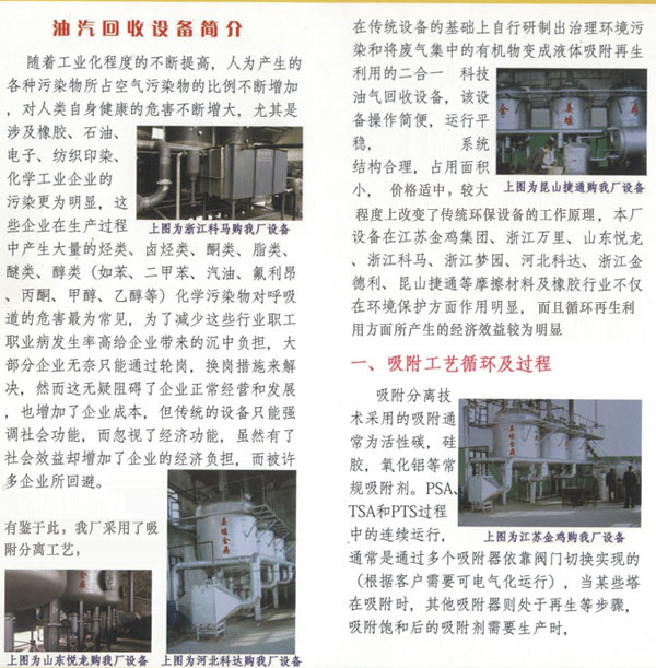 有鑒于此,我廠采用了吸附分離工藝,在傳統(tǒng)設(shè)備的基礎(chǔ)上自行研制出治理環(huán)境污染和將廢氣集中的有機物變成液體吸附再生利用的二合一油汽回收設(shè)備。